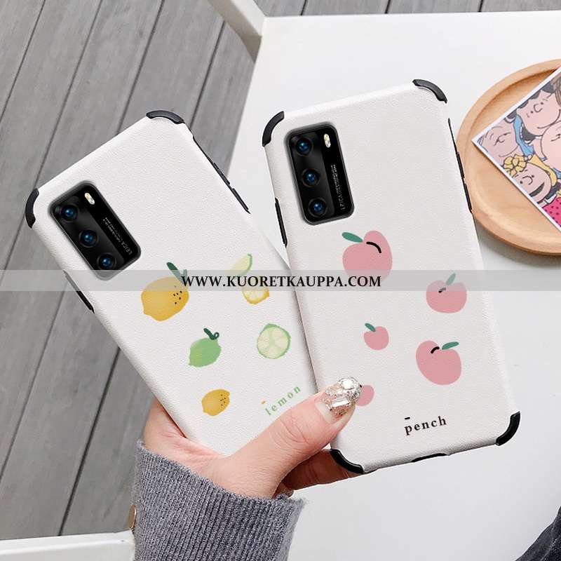 Kuori Huawei P40, Kuoret Huawei P40, Kotelo Huawei P40 Suojaus Nahkakuori Valkoinen Net Red Mulberry