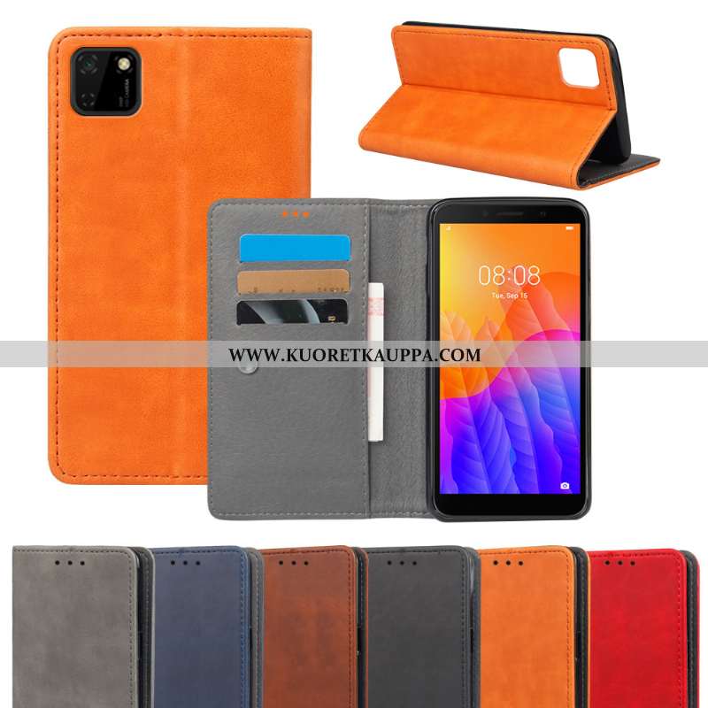 Kuori Huawei Y5p, Kuoret Huawei Y5p, Kotelo Huawei Y5p Salkku Nahkakuori Oranssi Kortti
