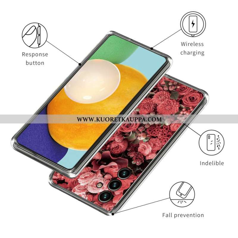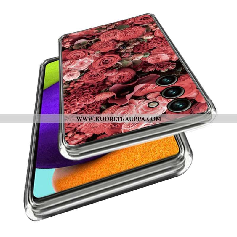 Kuori Samsung Galaxy A15 Vaaleanpunaiset Ja Punaiset Kukat Suojakuori