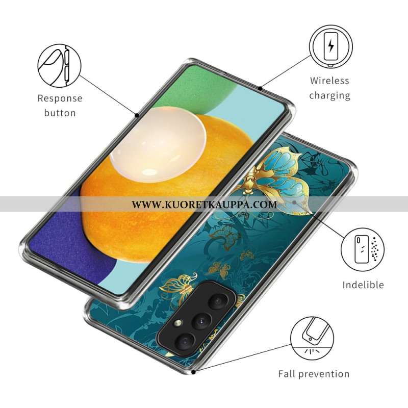 Kuori Samsung Galaxy A55 5g Kultainen Perhoskuvio