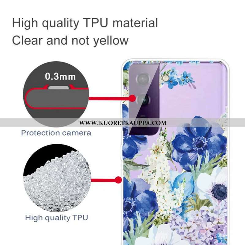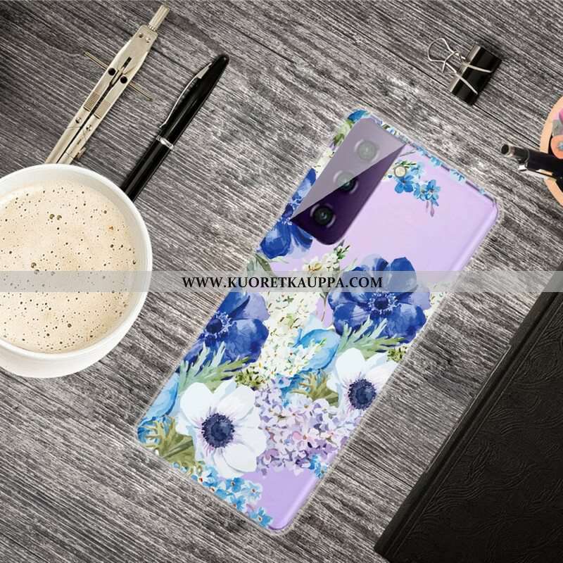 Kuori Samsung Galaxy S21 FE Akvarelli Siniset Kukat