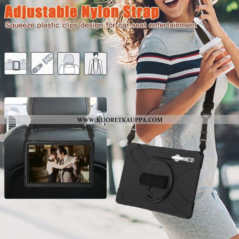 Kuori Samsung Galaxy Tab S10 Ultra Kolminkertainen Suojaushihna Ja Jalusta