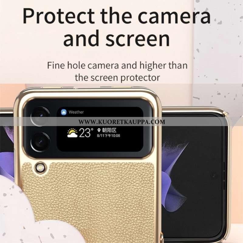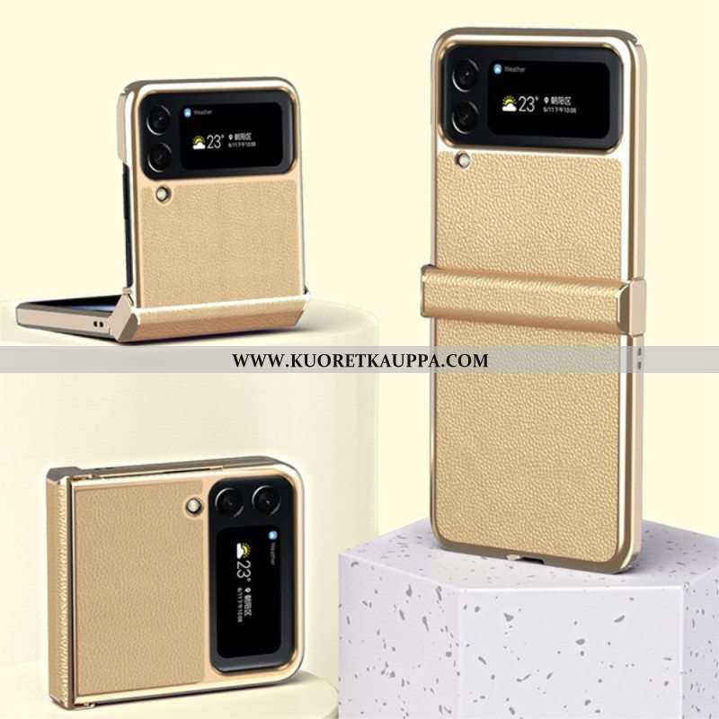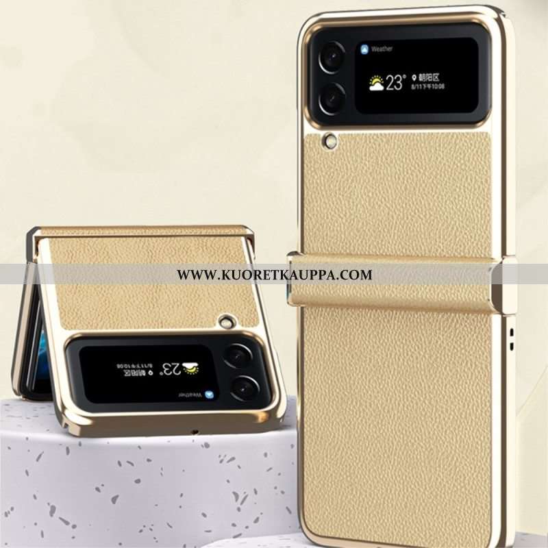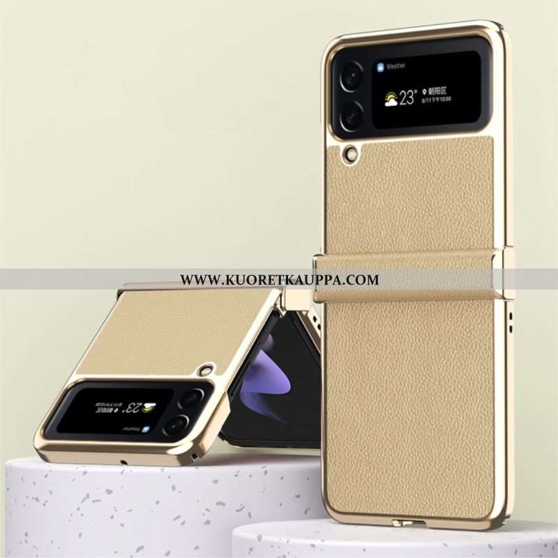 Kuori Samsung Galaxy Z Flip 4 Kotelot Flip Litchi Nahkaiset Metallireunat