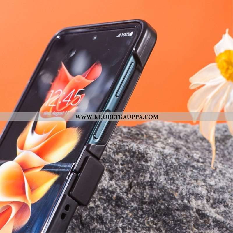 Case Samsung Galaxy Z Flip 4 Kotelot Flip Metalli- Ja Handsfree-tuki