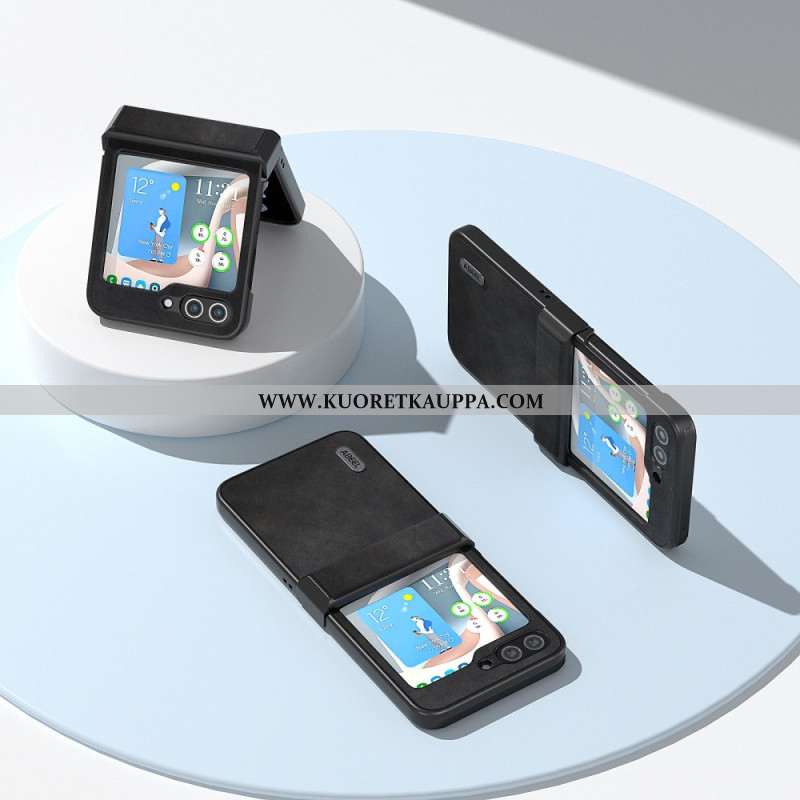 Kuori Samsung Galaxy Z Flip 7 Fe Mokkanahkaefekti Pyörivällä Jalustalla