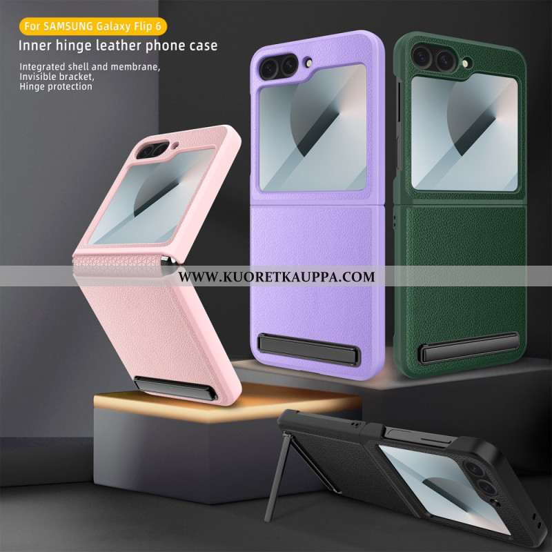 Kuori Samsung Galaxy Z Flip 7 Fe Magsafe-yhteensopiva Nahkaefekti Jalusta