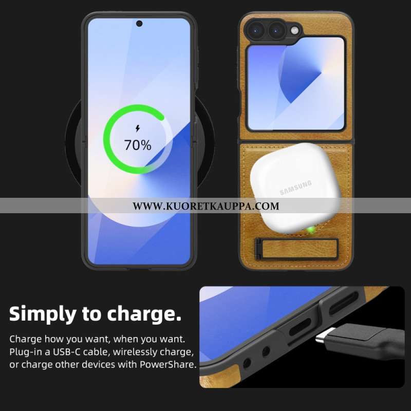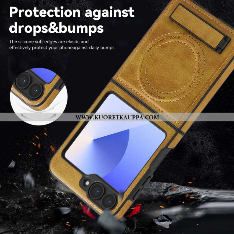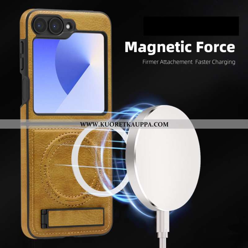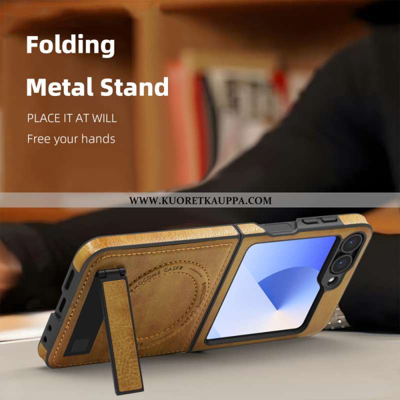 Kuori Samsung Galaxy Z Flip 7 Fe Magsafe-yhteensopiva Nahkaefekti Jalusta