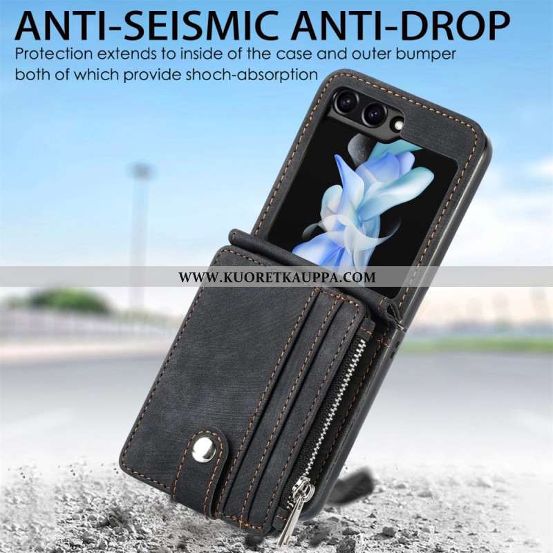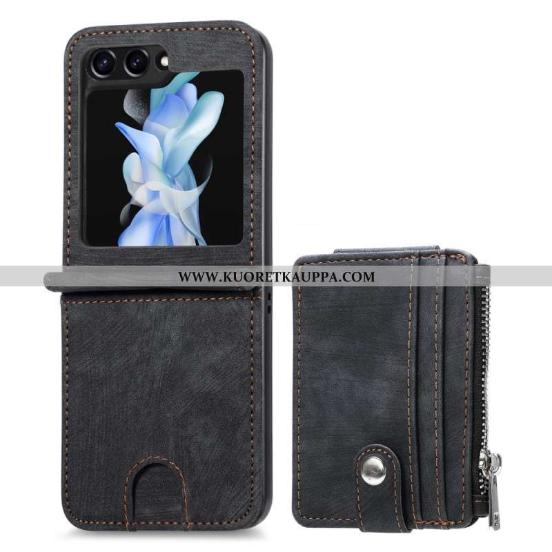 Kuori Samsung Galaxy Z Flip 7 Fe Retro Jalusta Ja Vetoketjullinen Korttipidike