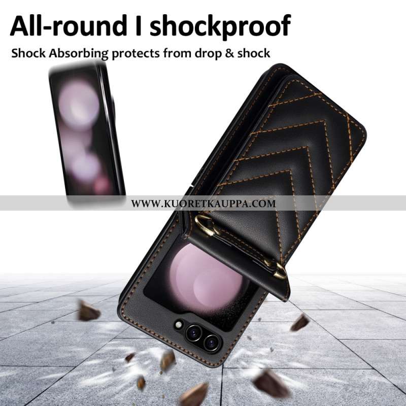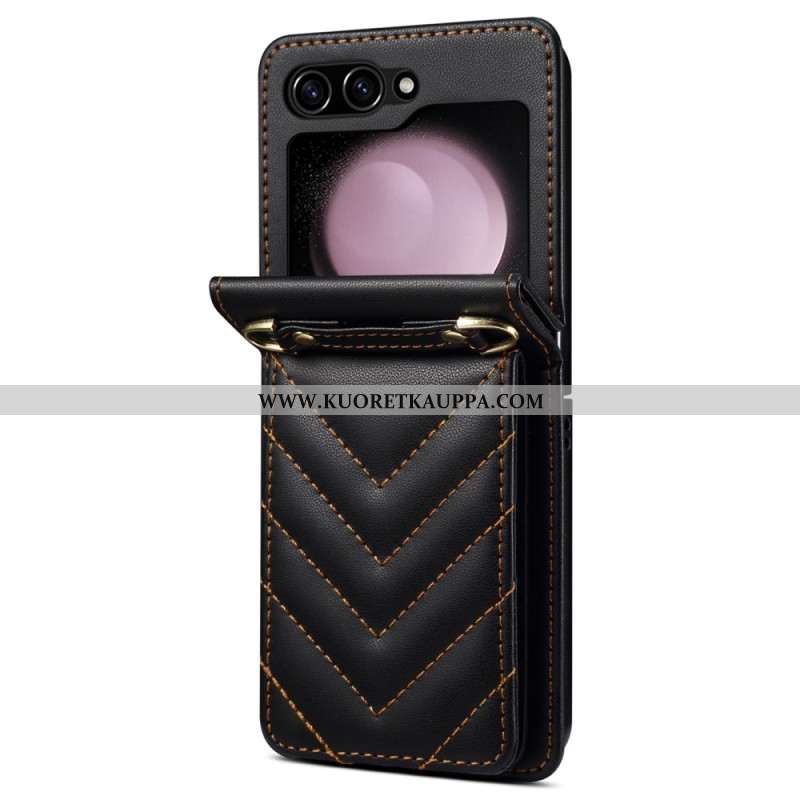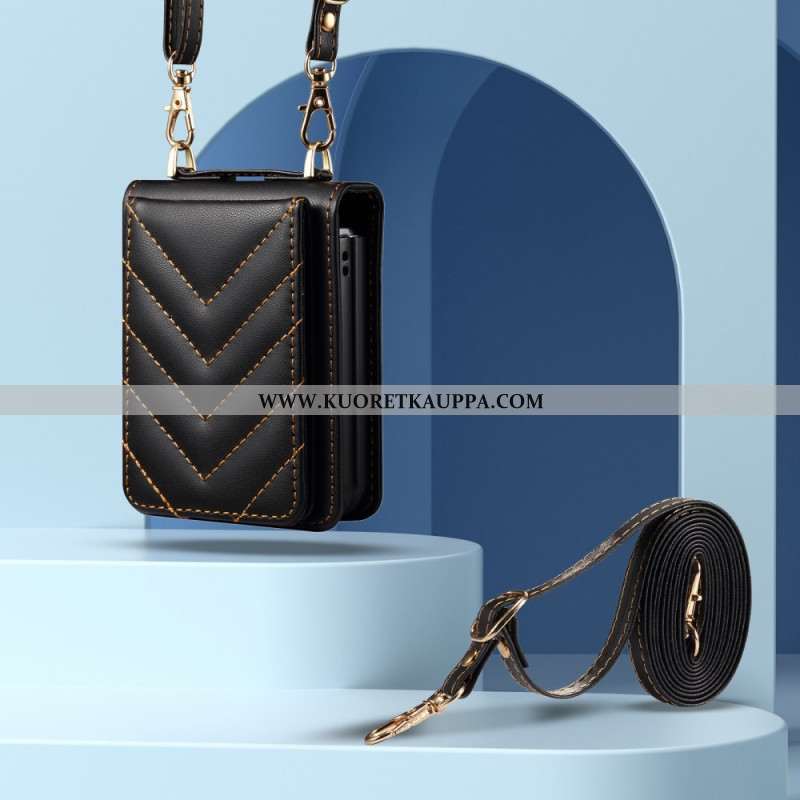 Kuori Samsung Galaxy Z Flip 7 Fe Tikattu Korttiteline Ja Olkahihna Suojakuori
