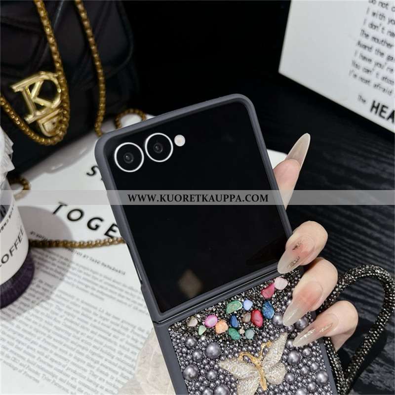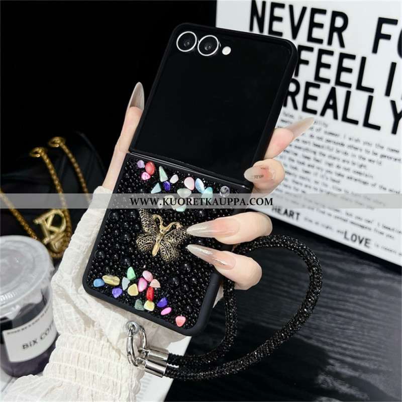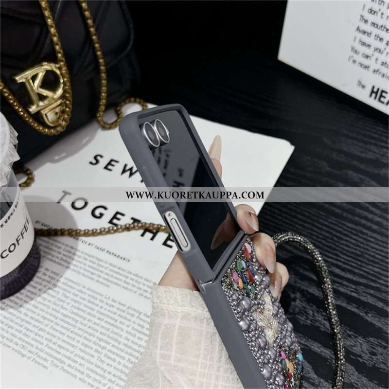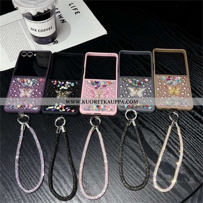 Kuori Samsung Galaxy Z Flip 7 Kimaltava Kuviointi Ja Rannehihna Suojakuori
