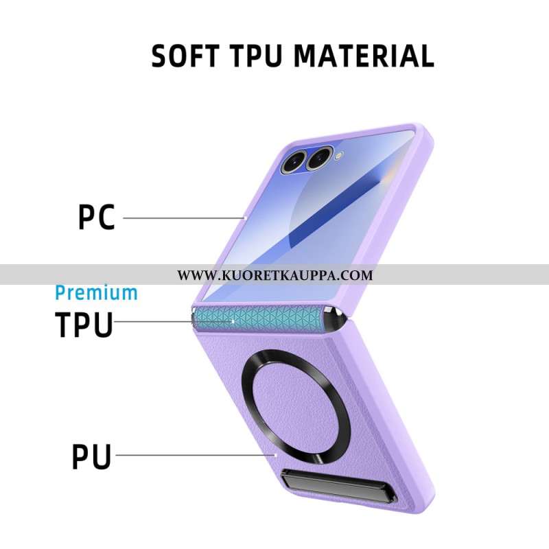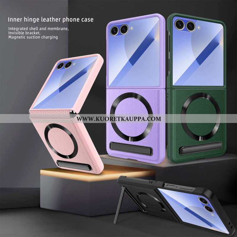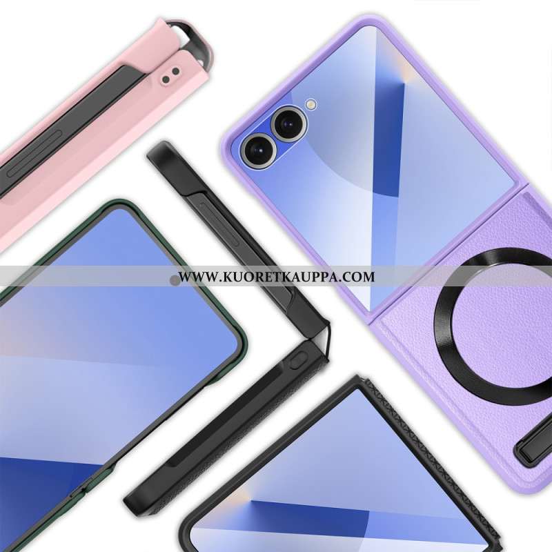 Puhelinkuoret Samsung Galaxy Z Flip 7 Nahkaefekti Pyörivällä Jalustalla