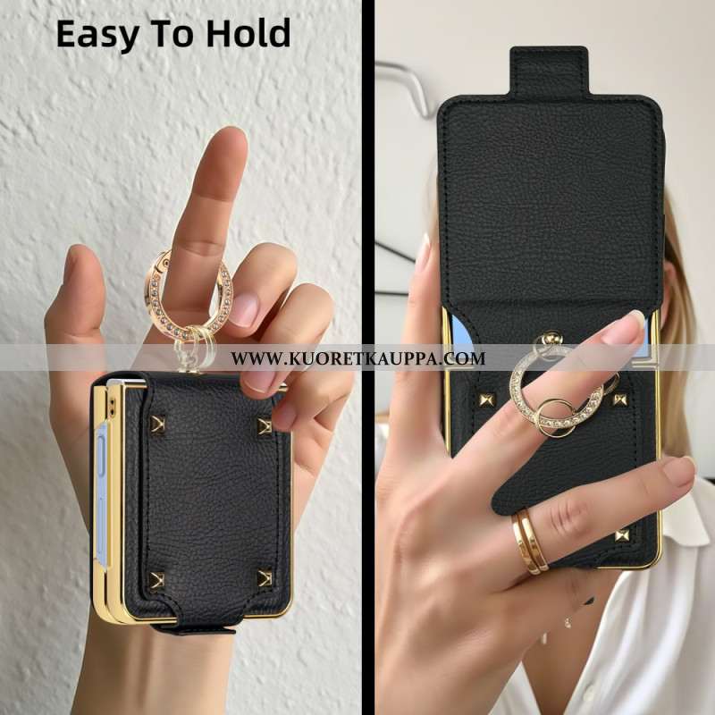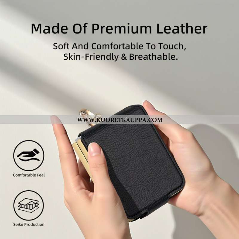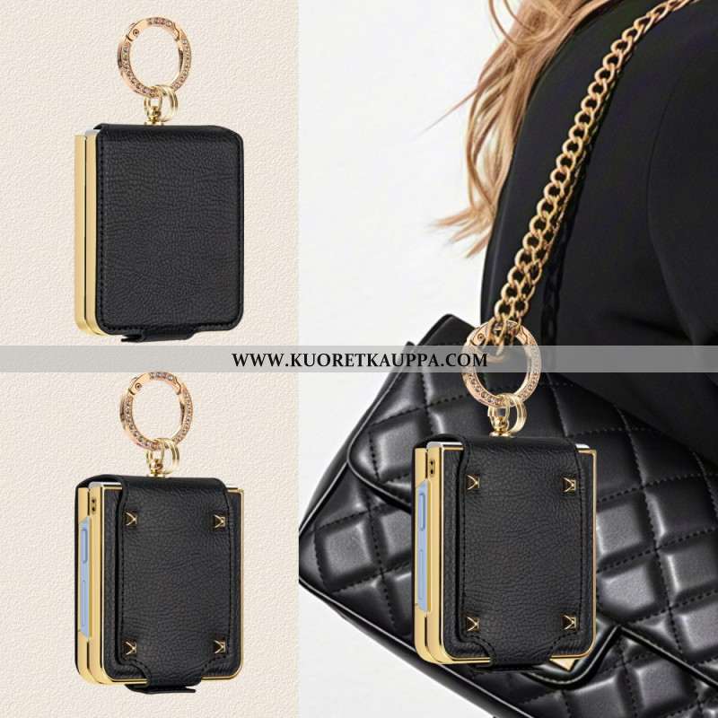 Puhelinkuoret Samsung Galaxy Z Flip 7 Nahkaefekti Pyörivällä Jalustalla