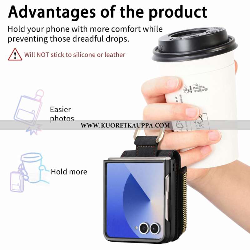 Kuori Samsung Galaxy Z Flip 7 Vetoketjullinen Lompakko Ja Olkahihna Suojakuori