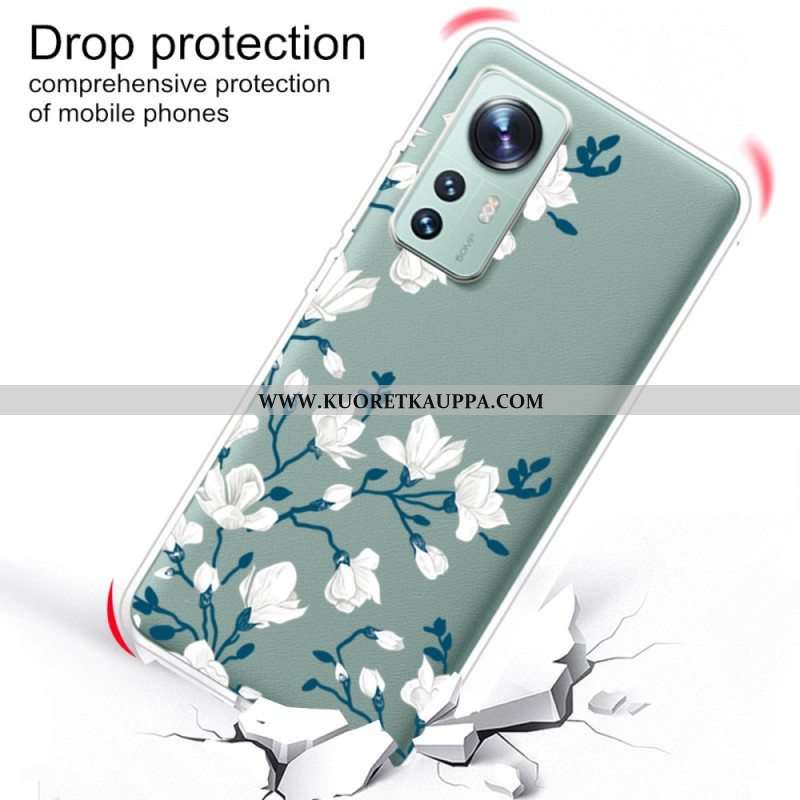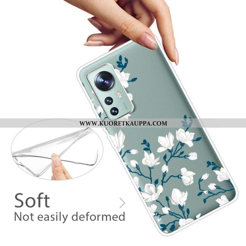Kuori Xiaomi 12 Pro Silikonin Valkoiset Kukat