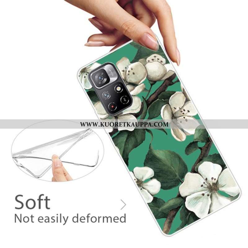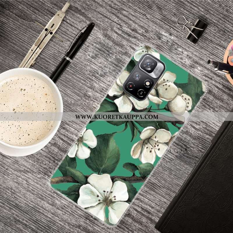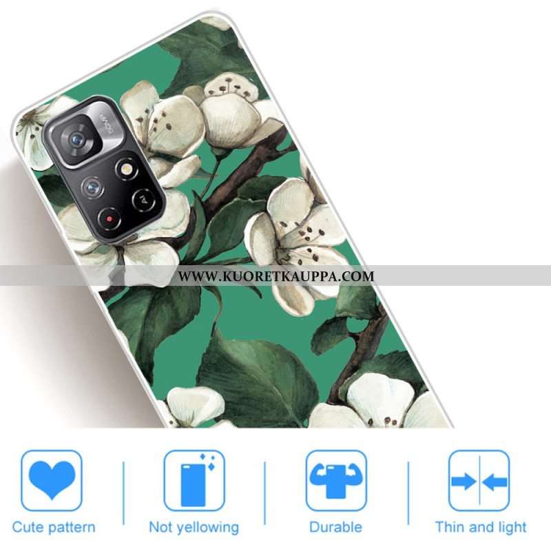 Kuori Xiaomi Redmi Note 11 Pro Plus 5G Silikonin Valkoiset Kukat