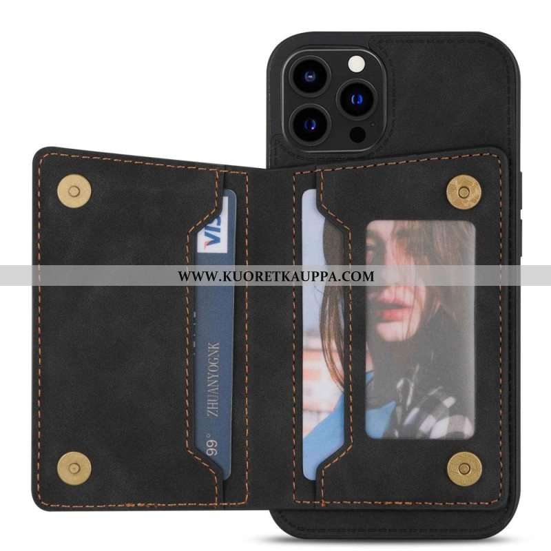 Kuori iPhone 14 Pro Lompakkokotelo Hands-free-tukilompakko