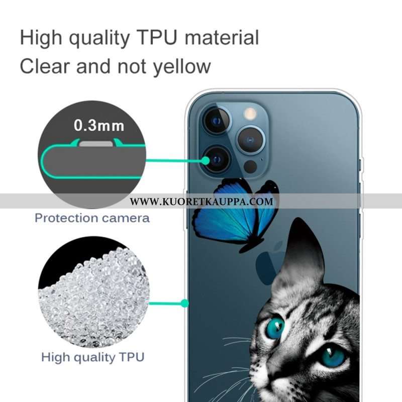 Kuori iPhone 14 Pro Max Kissa Ja Perhonen
