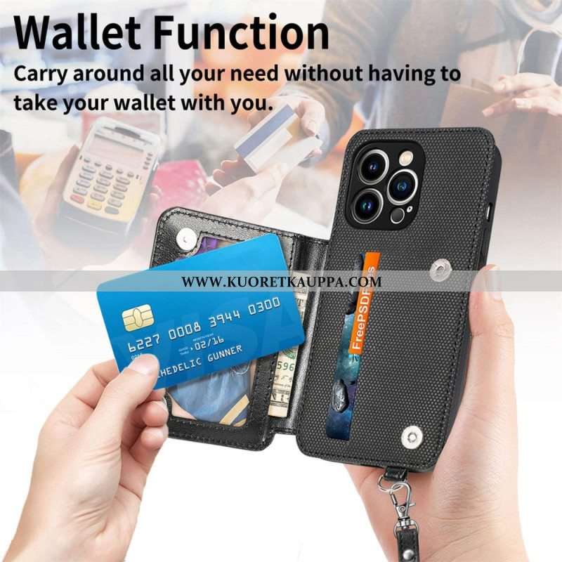 Kuori iPhone 14 Pro Max Lompakkokotelo Lompakko Ja Kaulanauha