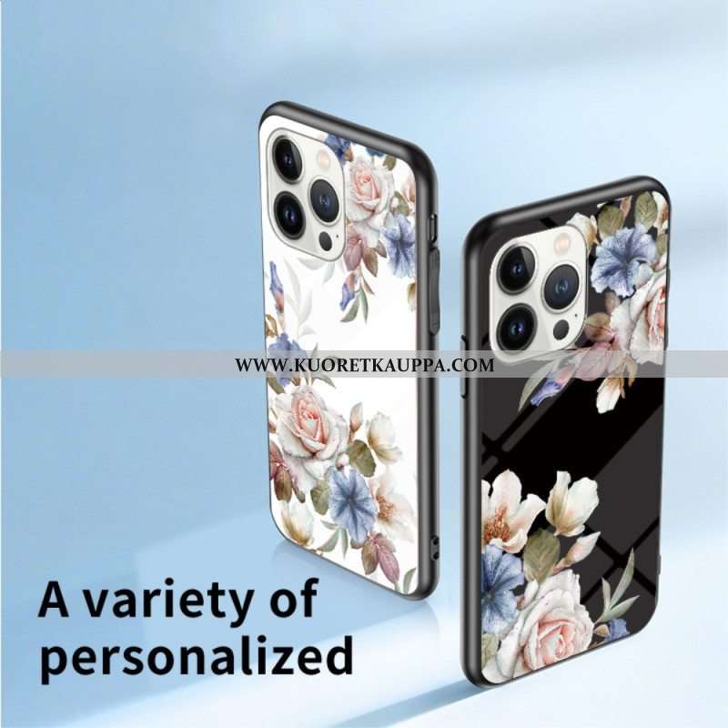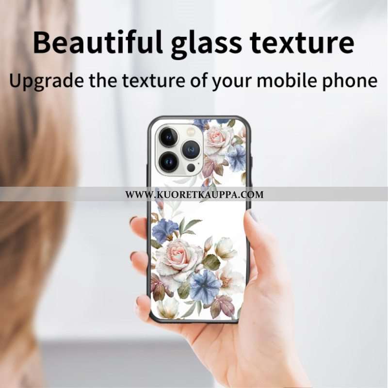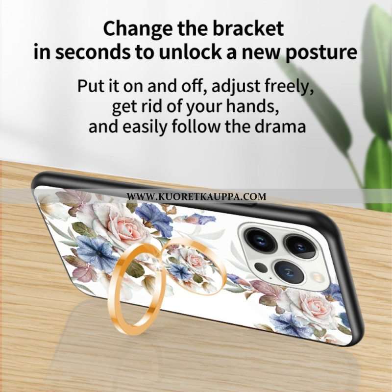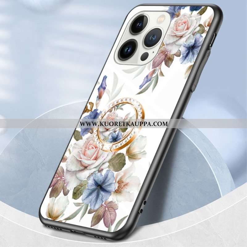 Kuori iPhone 15 Pro Kukkakarkaistu Lasi Tukirenkaalla