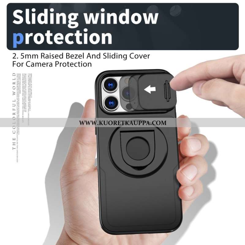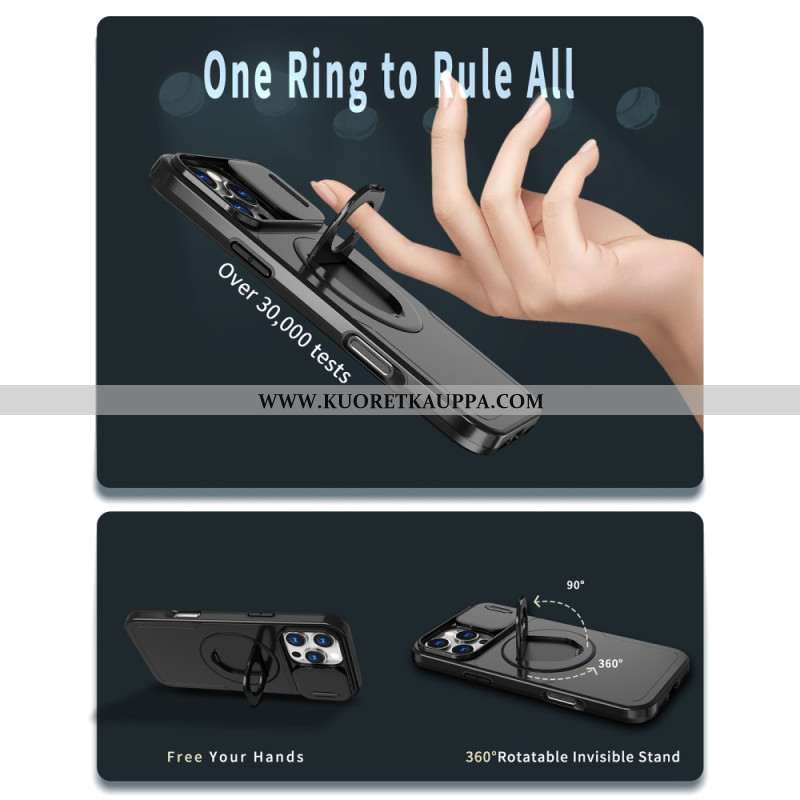 Kuori iPhone 16 Pro Magneettinen Tukirengas Ja Liukuva Linssisuoja Suojakuori