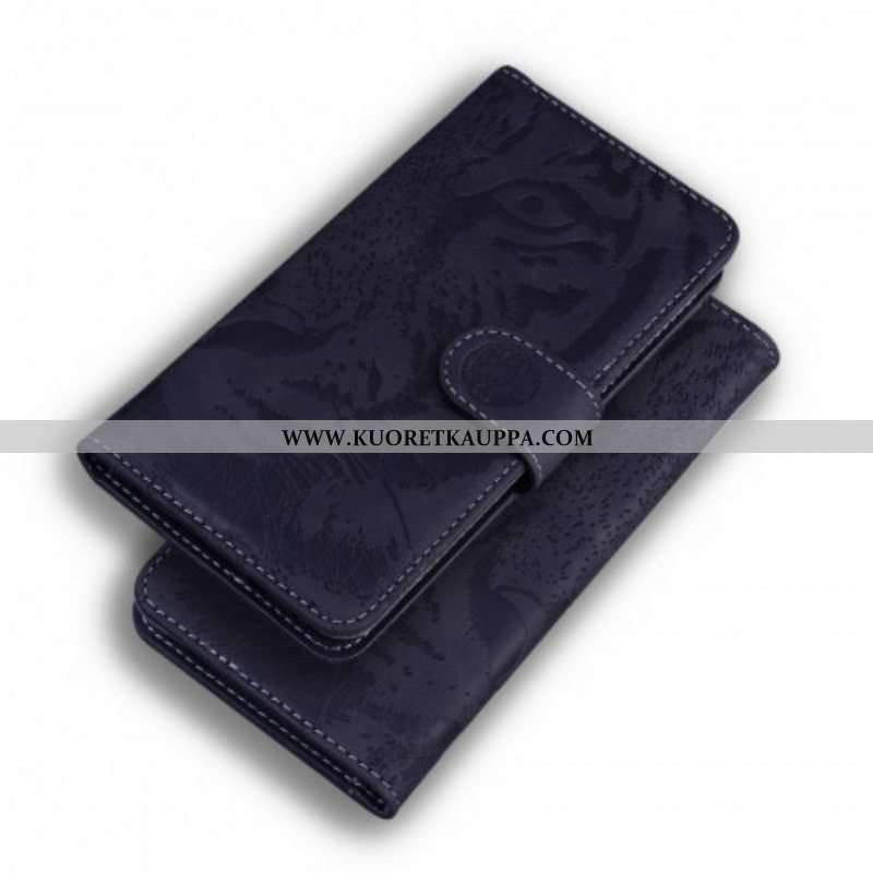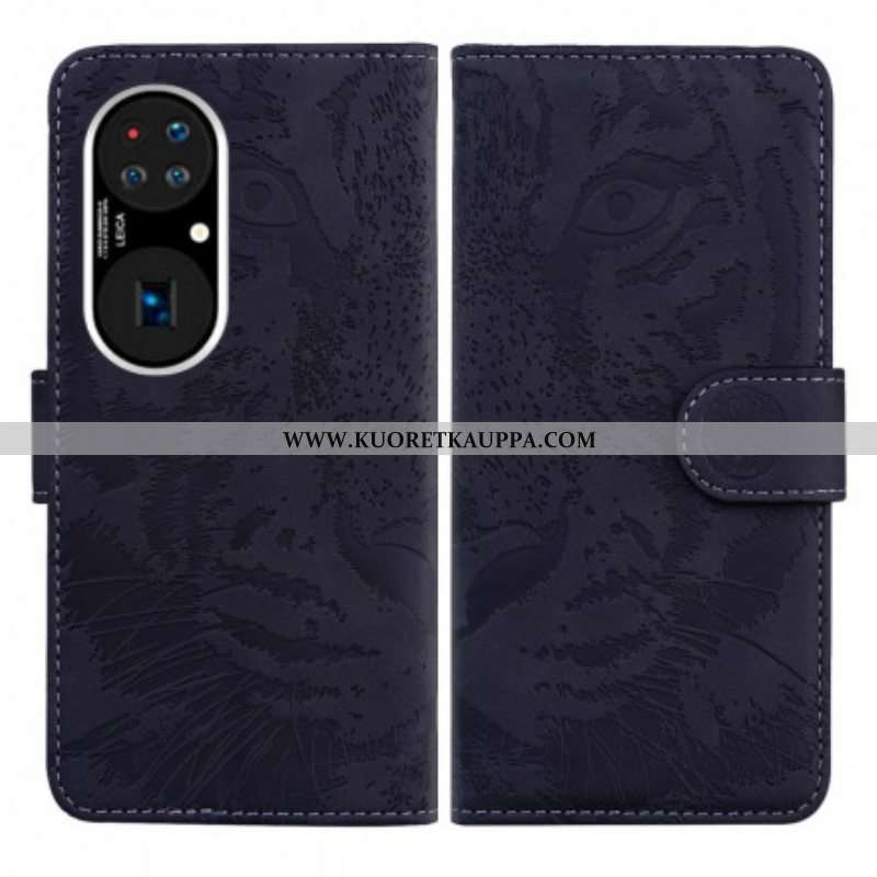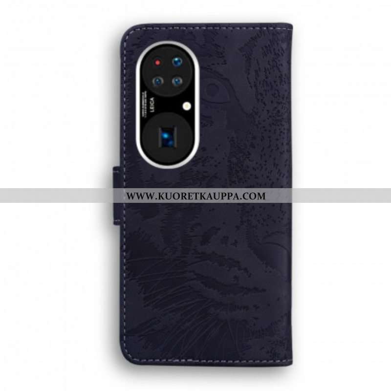 Nahkakotelo Huawei P50 Tiger-kasvoprintti
