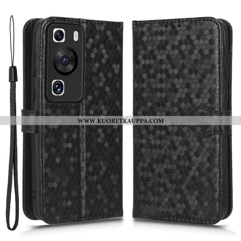 Nahkakotelo Huawei P60 Pro Suojaketju Kuori 3d-kuvio Hihnalla