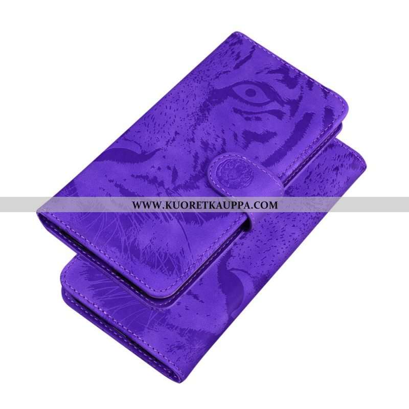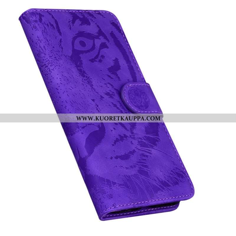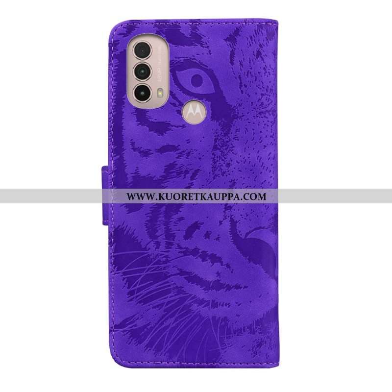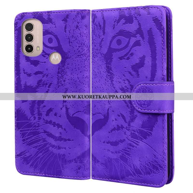 Nahkakotelo Moto E40 / E30 / E20 Tiger-kasvoprintti
