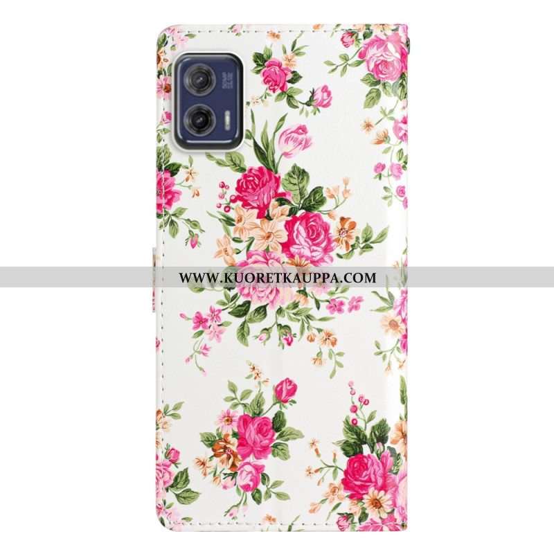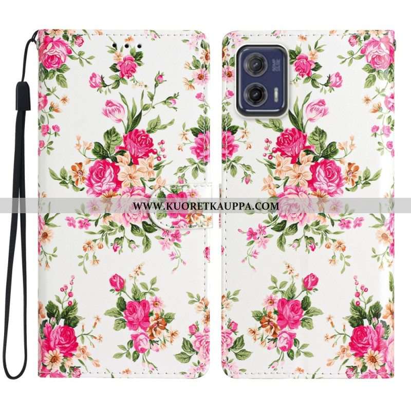 Nahkakotelo Moto G73 5G Suojaketju Kuori Hihna Liberty Flowers