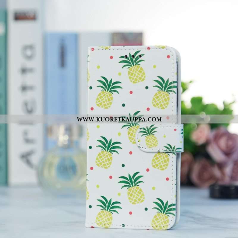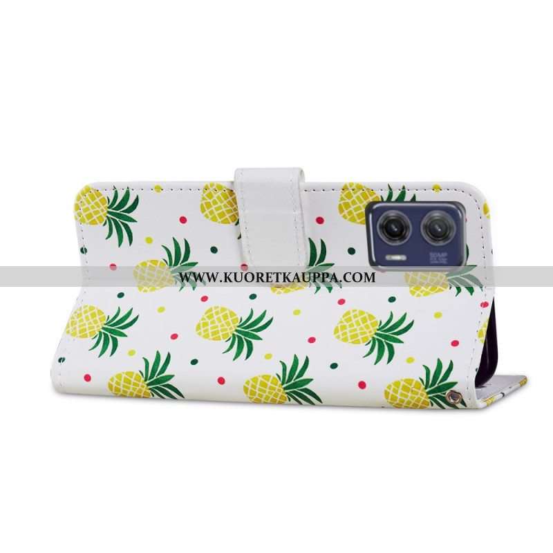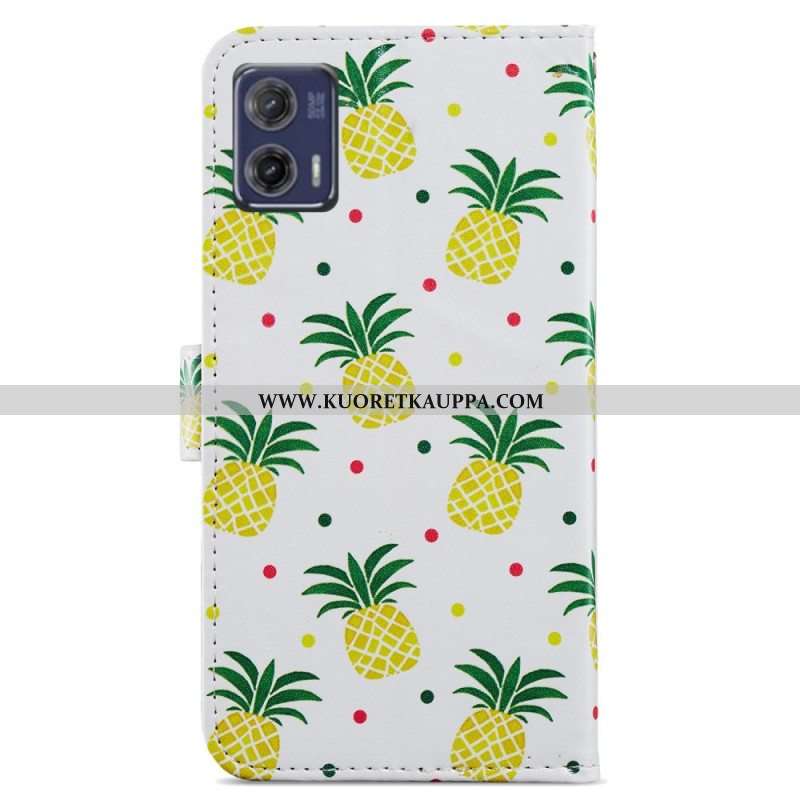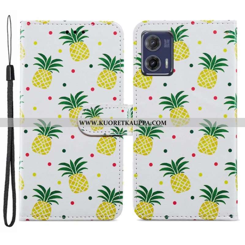 Nahkakotelo Moto G73 5G Suojaketju Kuori Strappy Ananas