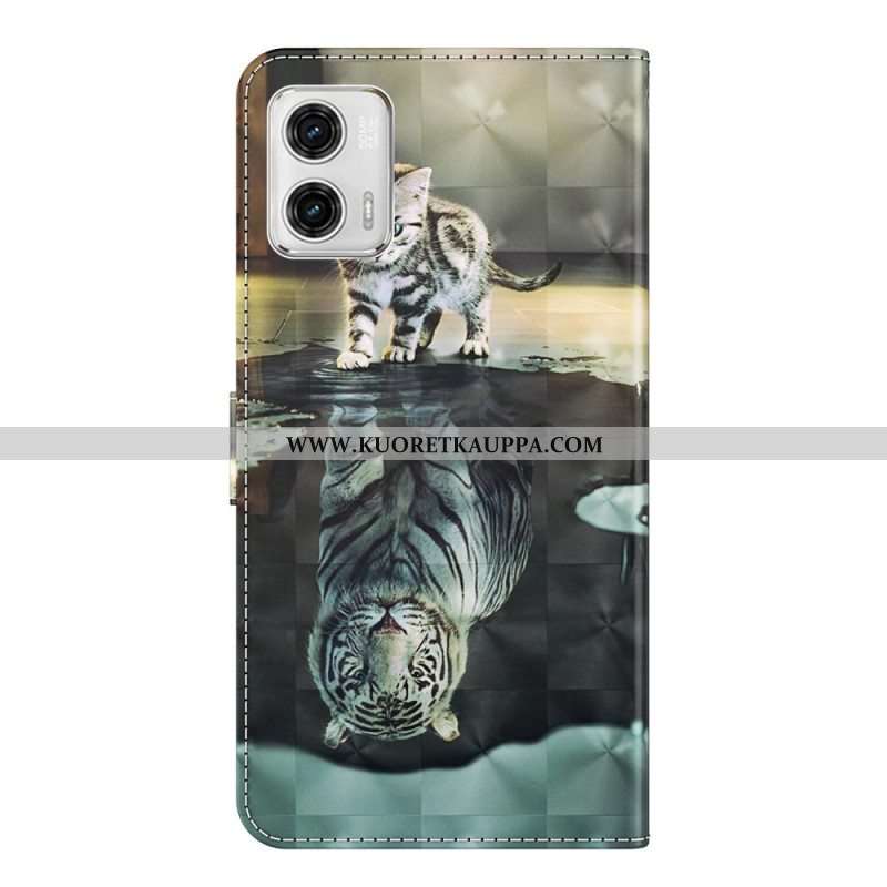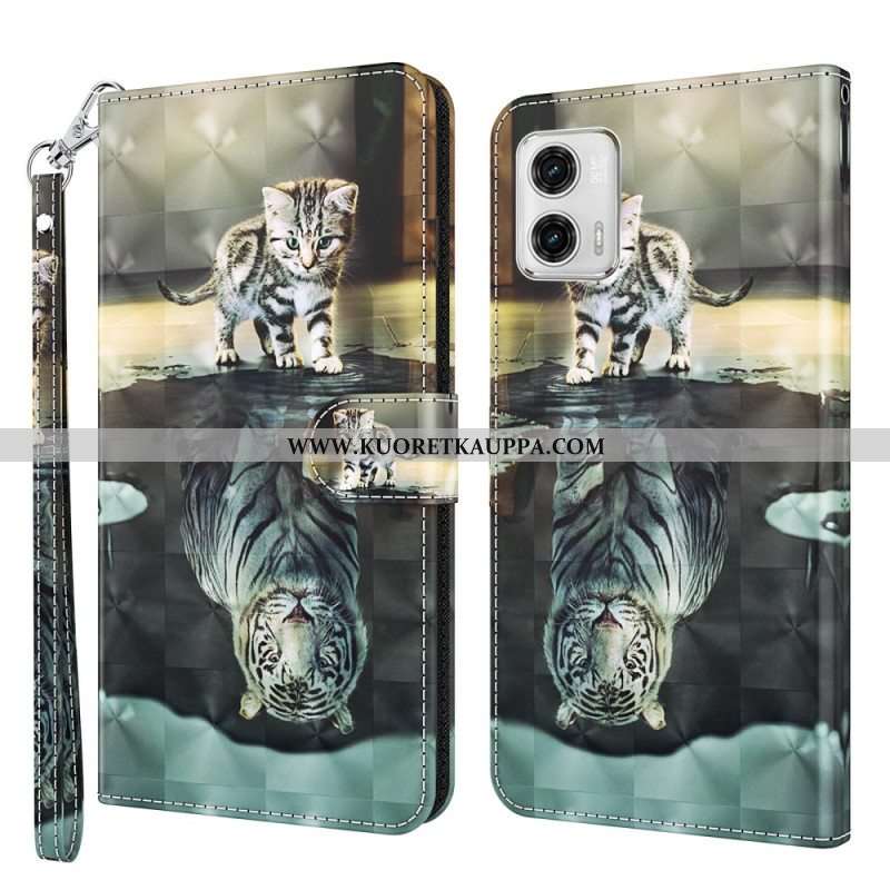 Nahkakotelo Moto G73 5G Suojaketju Kuori Strappy Kitten Dream