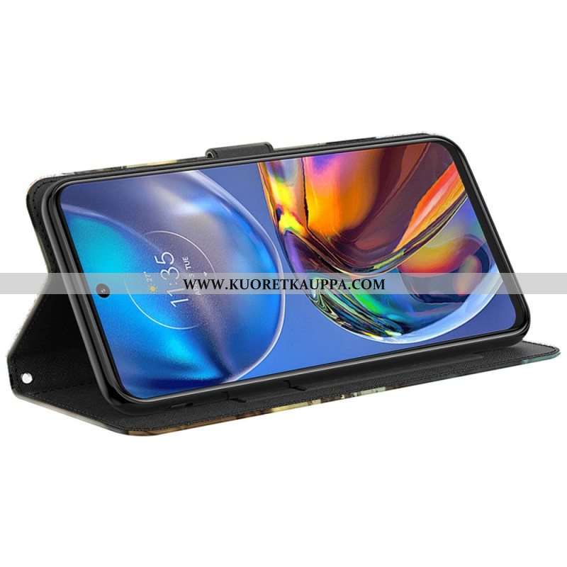 Nahkakotelo Moto G73 5G Suojaketju Kuori Hihna Liberty Flowers