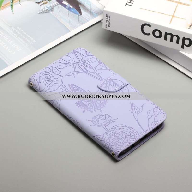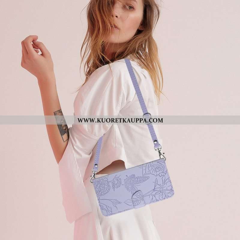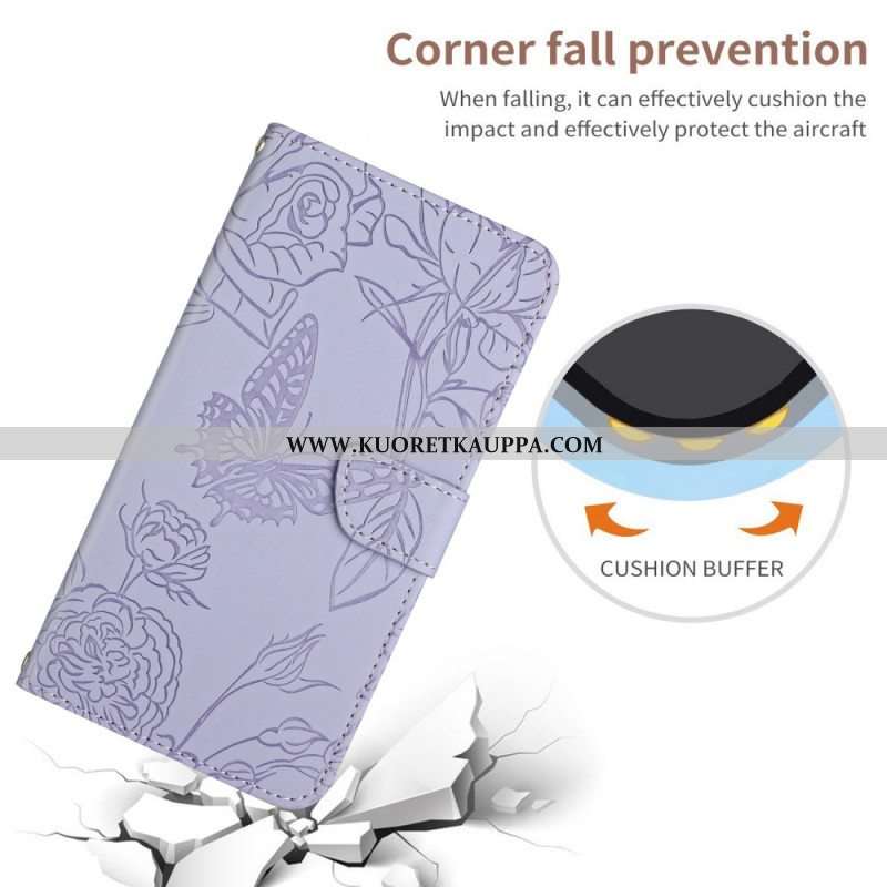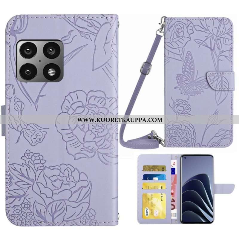 Nahkakotelo OnePlus 10 Pro 5G Perhoset Olkahihnalla