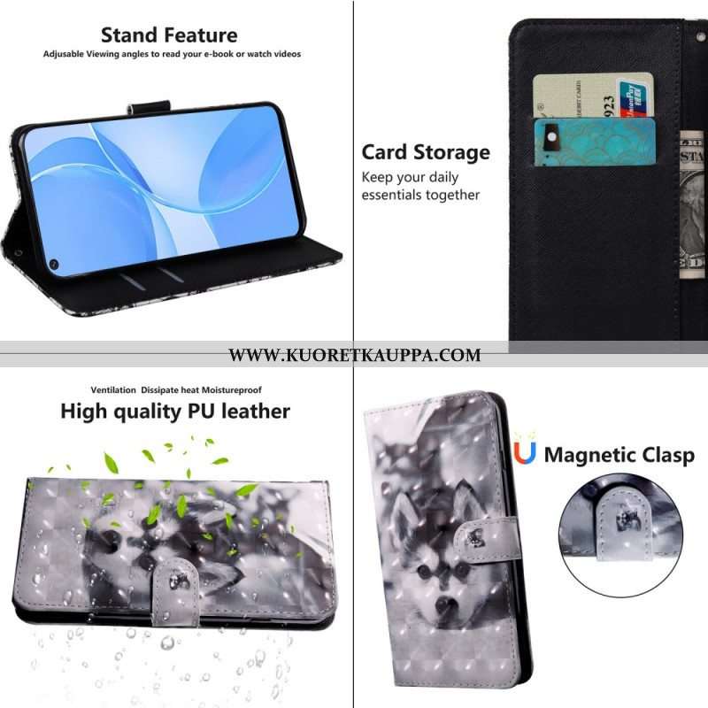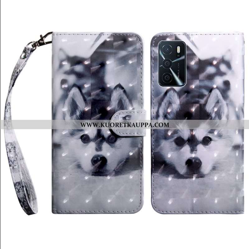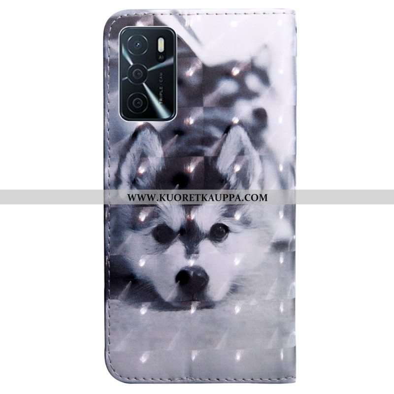 Nahkakotelo Oppo A16 / A16s Mustavalkoinen Koira