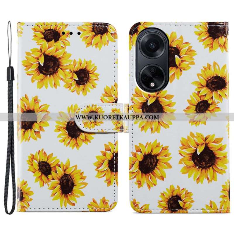 Nahkakotelo Oppo A98 5g Auringonkukat