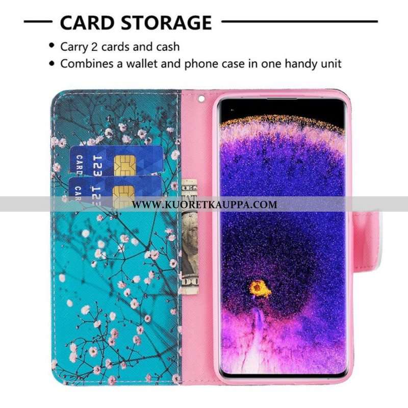 Nahkakotelo Oppo Find X5 Lite Kukkivat Oksat
