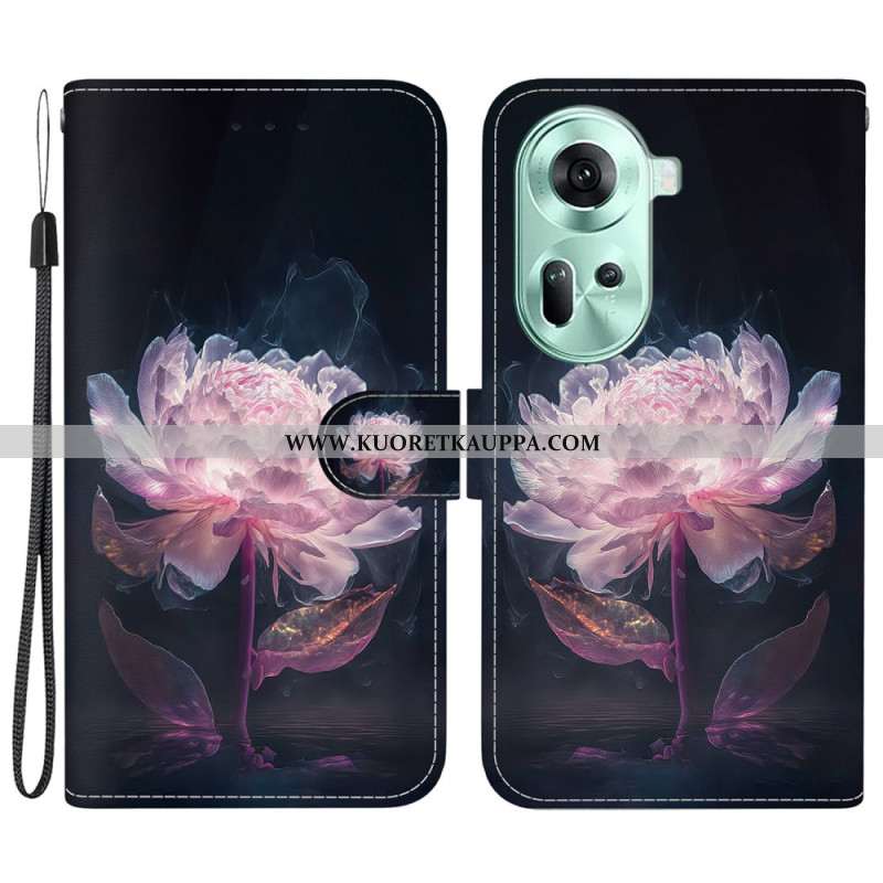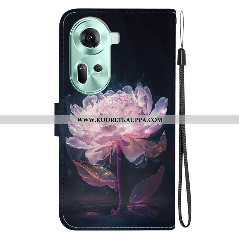 Nahkakotelo Oppo Reno 11 5g Violetti Pioni Hihnalla