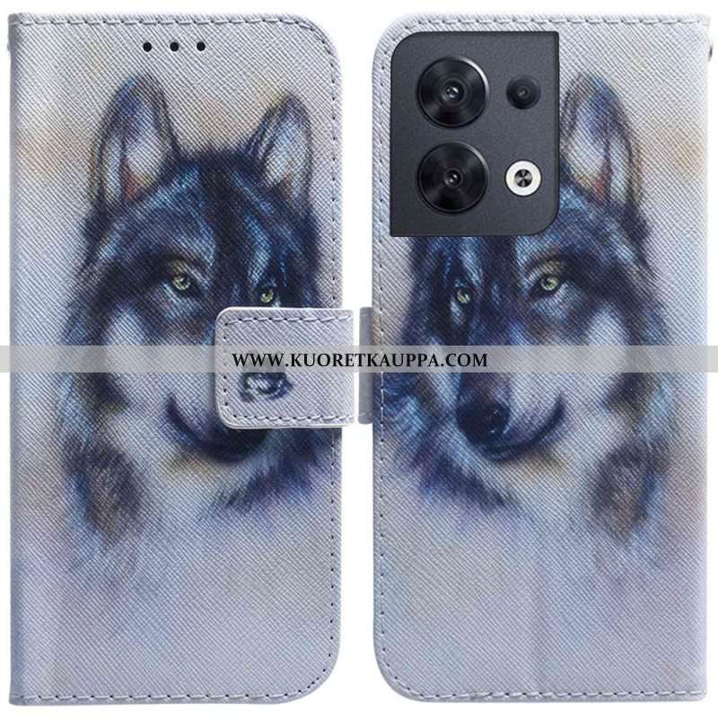 Nahkakotelo Oppo Reno 8 Akvarellikoira Kaulanauhalla