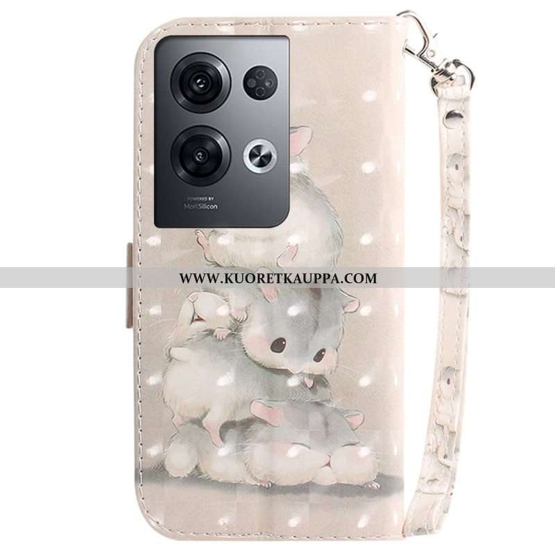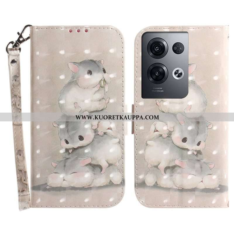 Nahkakotelo Oppo Reno 8 Pro Hamsterit Kaulanauhalla