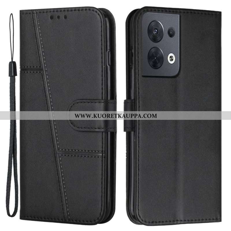 Nahkakotelo Oppo Reno 8 Suojaketju Kuori Strappy Geometric Leather Effect