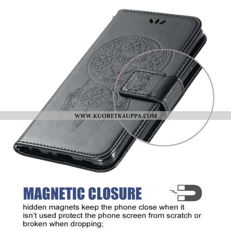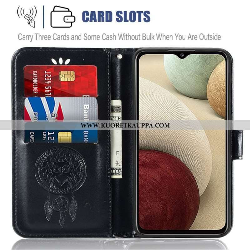 Nahkakotelo Samsung Galaxy A13 5G / A04s Nahkaefekti Dream Catcher Owl