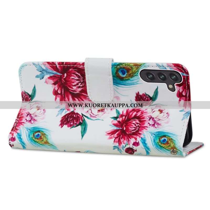 Nahkakotelo Samsung Galaxy A13 5G / A04s Voimakkaat Kukat