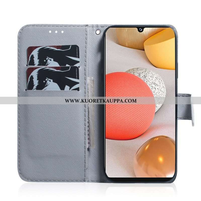 Nahkakotelo Samsung Galaxy A42 5G Maalattuja Perhosia Ja Kukkia