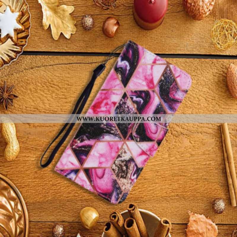 Nahkakotelo Samsung Galaxy A52 4G / A52 5G / A52s 5G Geometrinen Marmori