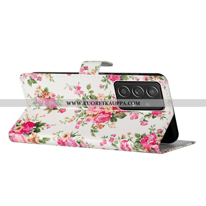 Nahkakotelo Samsung Galaxy A53 5G Suojaketju Kuori Hihna Liberty Flowers