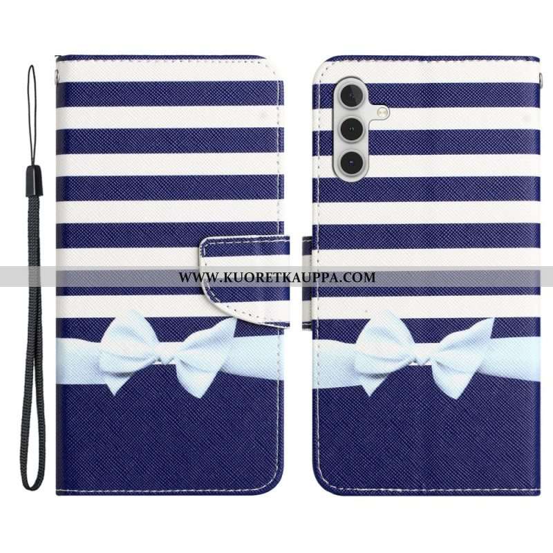 Nahkakotelo Samsung Galaxy A54 5G Suojaketju Kuori Navy Hihna