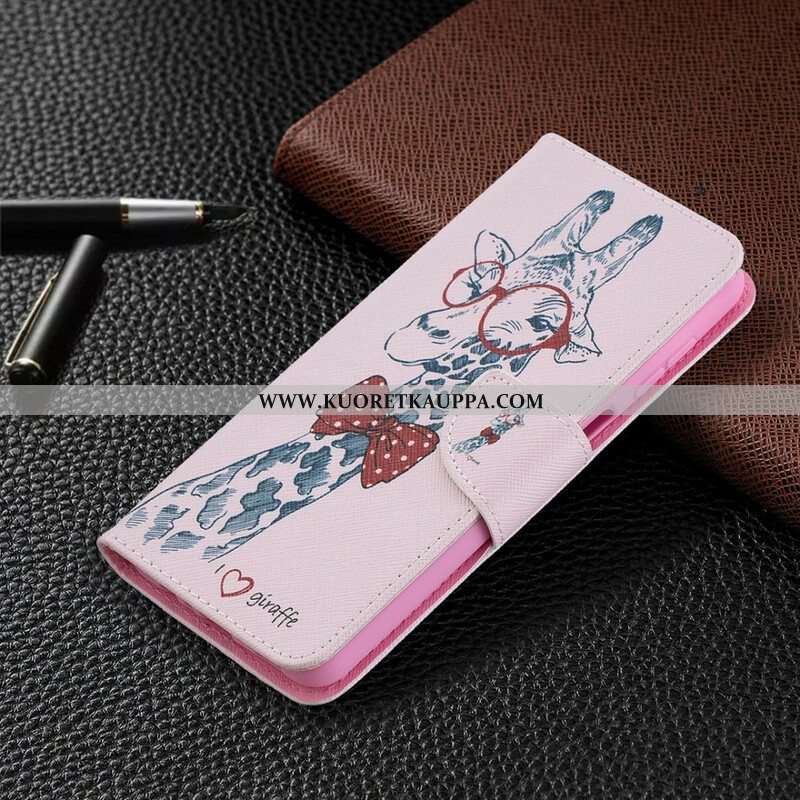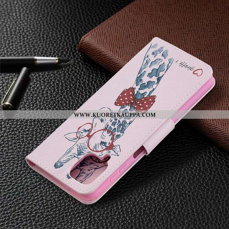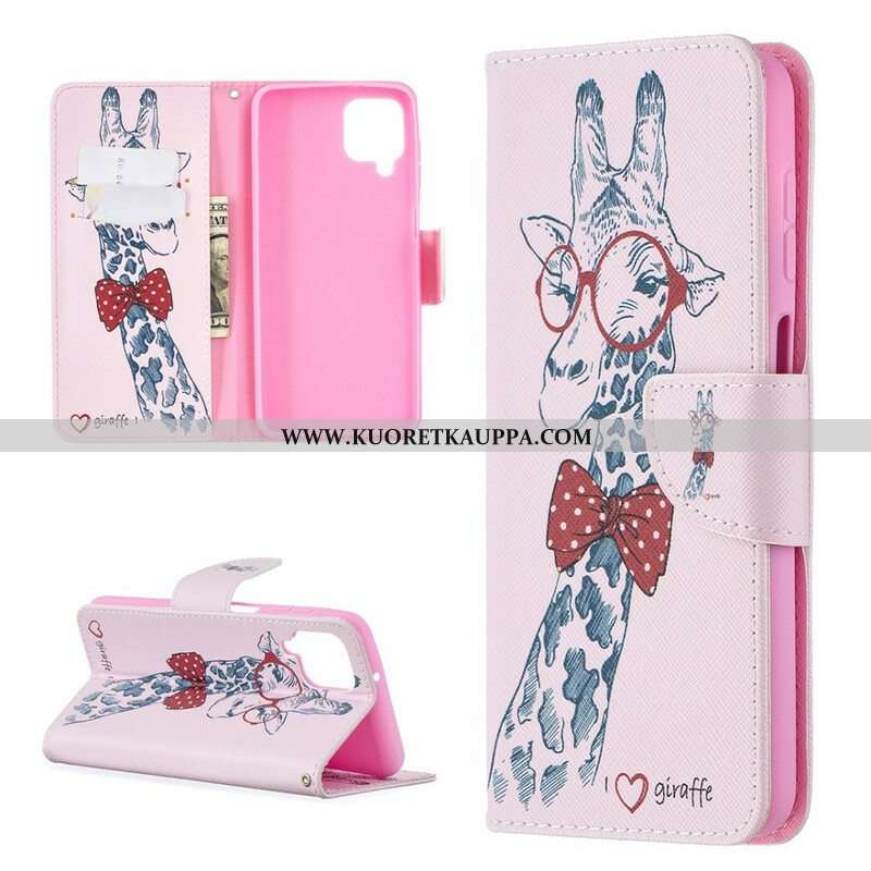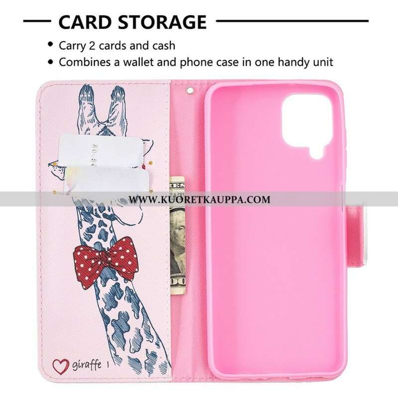 Nahkakotelo Samsung Galaxy M12 / A12 Taitava Kirahvi