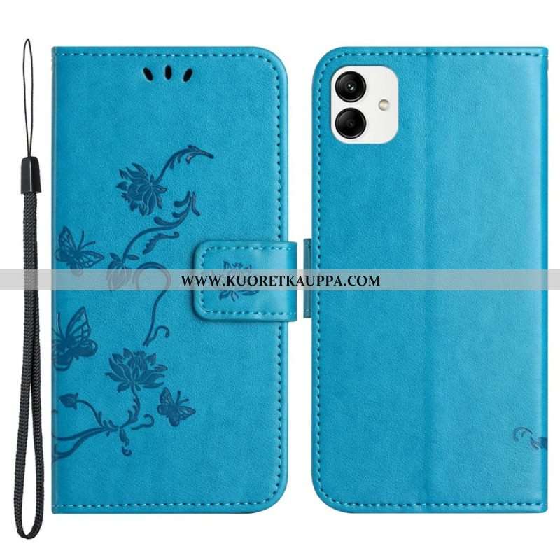 Nahkakotelo Samsung Galaxy M13 Suojaketju Kuori Strappy Kukat
