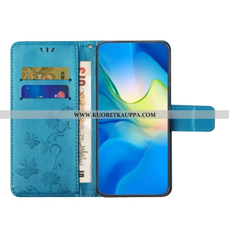 Kotelot Samsung Galaxy M13 Butterfly Charm Ja Olkahihna