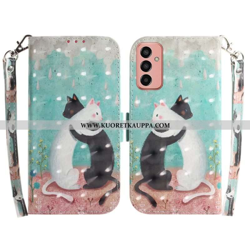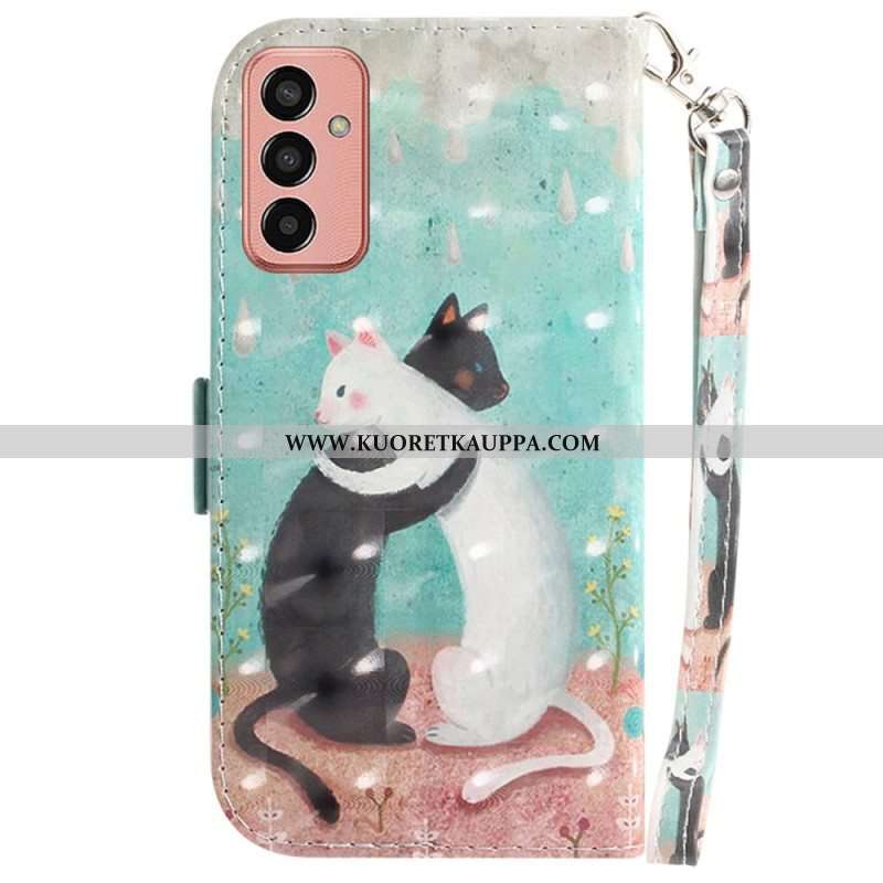 Nahkakotelo Samsung Galaxy M13 Tanssivat Kissat Kaulanauhan Kanssa