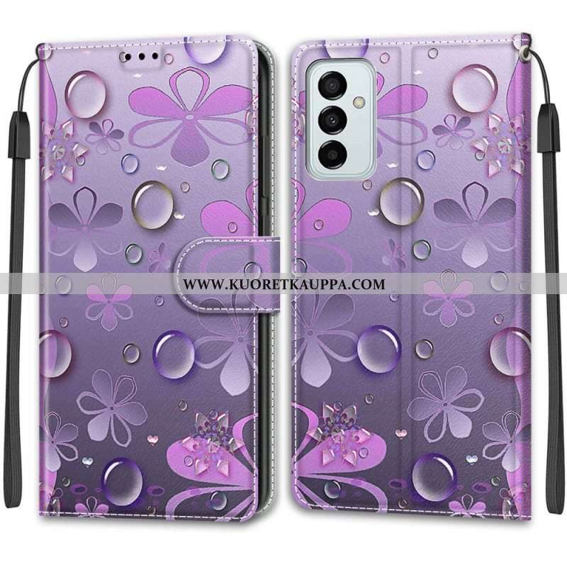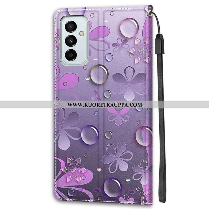 Nahkakotelo Samsung Galaxy M23 5G Vesipisarat Kaulanauhalla